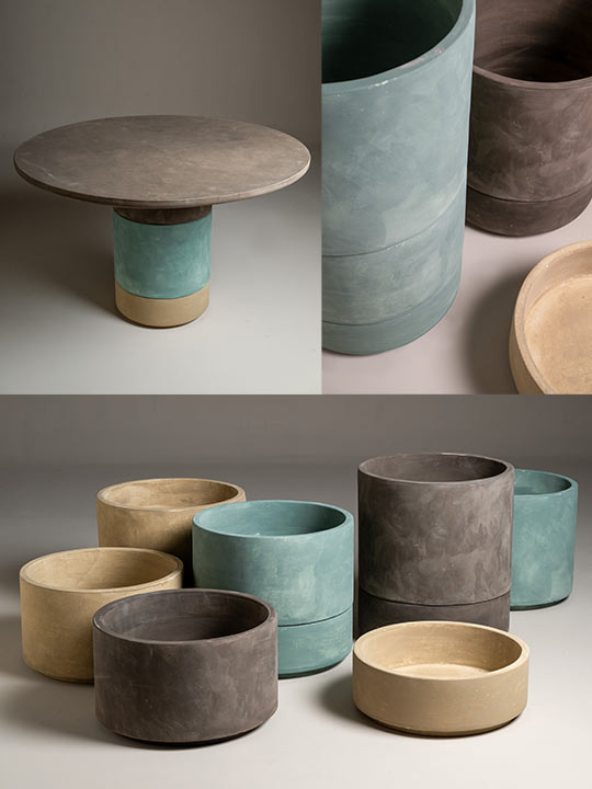 OTTO distils tables, stools and planters into pure, rounded geometries. A precise interplay of solids and voids brings concrete to a more human scale, distancing it from austere architectural associations. Hand-applied finishes in mineral tones—sage green, urban concrete and anthracite—enhance surface tactility, allowing the pieces to move fluidly between outdoor and interior contexts.