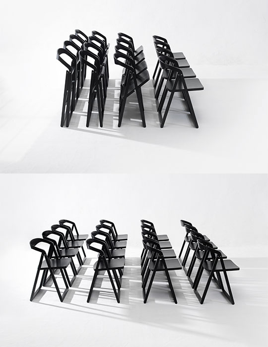 From its inception, Patan was conceived as more than a utilitarian object. Its defining feature—a gently curved backrest—sets it apart within its category, offering natural ergonomic support rarely associated with folding chairs. The gesture is subtle, yet decisive, reflecting Azumi’s sensitivity to human posture and Zilio A&C’s focus on the quality of interaction between people and objects.