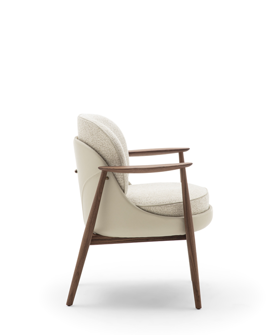 While preserving the collection’s defining qualities—soft, enveloping lines and a quiet balance between comfort and elegance—Biloba reveals a more considered configuration. Its compact silhouette is paired with a technically developed seat and backrest, offering enduring support for long, unhurried dining moments.
