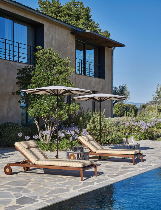 Each piece tells its own story. The Moremi sofa pairs soft, generous cushions with a sculpted wooden base, blending colonial-inspired elegance with a sense of calm and comfort. Capoverde sunbeds and deck chairs bring sleek lines and signature Cavalli details, perfect for leisurely afternoons in the sun. Even the iconic Capoverde director chair receives an outdoor update, with gold accents and patterned upholstery that radiate personality and style.