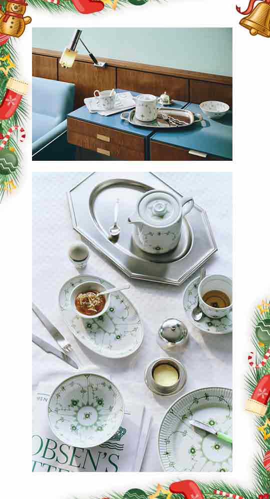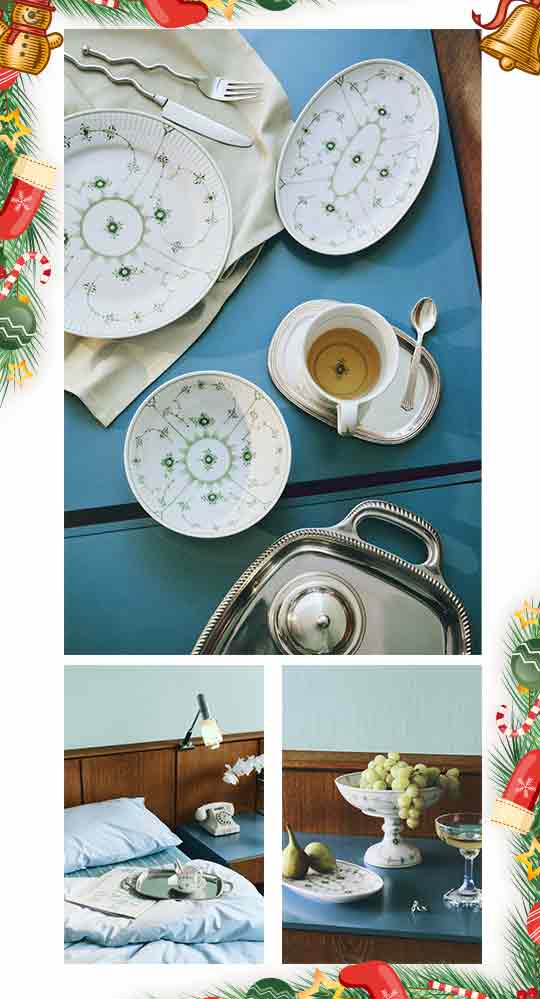 For those drawn to modernist history, the Green Fluted Plain design—originally chosen by Arne Jacobsen for the SAS Royal Hotel in Copenhagen—makes a sleek and contemporary statement. Meanwhile, the Star Fluted Christmas dinnerware, adorned with gold, red, and iconic yuletide motifs, remains a beloved classic, perfect for evoking festive nostalgia.
