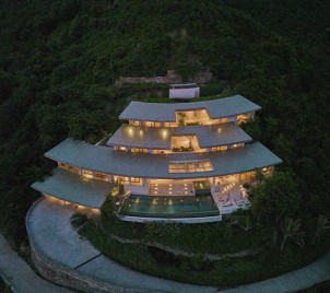 The industrial concept is represented by the presence of several steel pillars around the house – a special request by Christiana, in order to avoid being trapped into the “typical classical luxurious house filled with rooms,” she says. The idea to make it look slanted came from Budi.