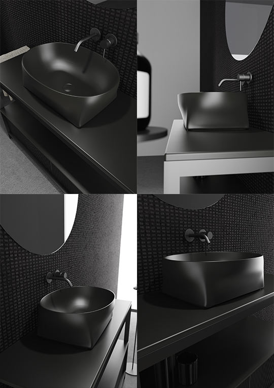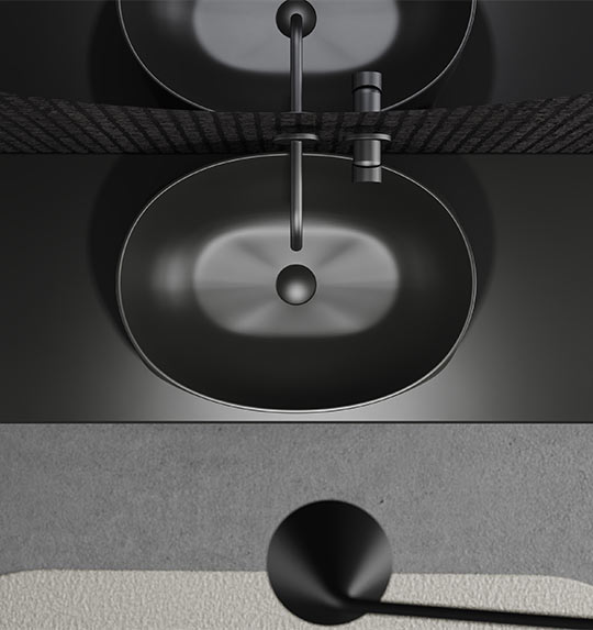 Function and form evolve together. The square base ensures stability and ease of installation, while the circular basin optimizes volume and usability. Internal curves guide water flow naturally, calibrated depth minimizes splashes, and thin continuous edges enhance comfort while simplifying maintenance. Every detail refines the everyday ritual into a moment of quiet well-being.
