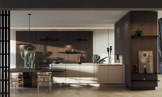 Introduced in 2025, the award-winning SG6, part of SieMatic’s URBAN style, responds to contemporary living by dissolving the boundaries between kitchen and living space. Its sculptural character is defined by soft curves and rounded corners that temper the rigidity of handle-free kitchens, creating a warmer architectural presence. A raised worktop edged by a subtle perimeter frame reinforces both functionality and visual depth, while modular storage, open shelving, and integrated lighting allow spaces to be configured with remarkable flexibility. The result is a kitchen conceived as a true furnishing element within the home—expressive, refined, and unmistakably urban.