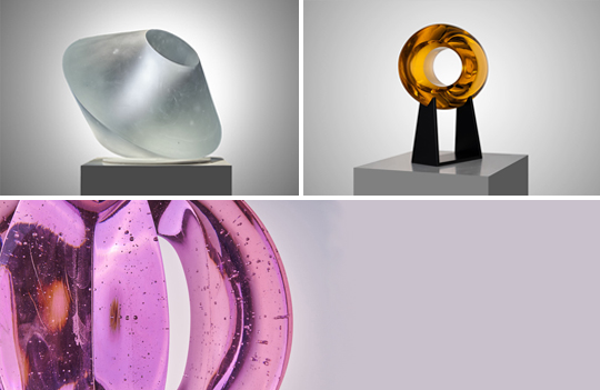 Vlastimil Beránek, a third-generation glassmaker, fuses tradition with innovation. Working in solid cast glass, his sculptural forms are inspired by elemental forces—water, fire, gravity—and exist at the intersection of fine and applied art. His abstract, often monumental pieces capture motion in stillness, and light in density.