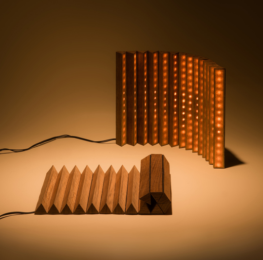 This inquiry unfolds through works such as the ALAS Lamp and the Espresso Chair & Stool. ALAS borrows the construction logic of a curtain blind—its ability to fold, segment, and hold form—reframed into a lighting object assembled by hand yet reading as industrial. The Espresso Chair begins with discarded coffee grounds, developed into a structural composite and engineered as a modular system that addresses not only form, but also reproducibility and scale.