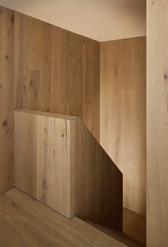 At its core lies Dinesen’s Layers Oak Classic flooring—its calm surface extending across floors, walls, and a sculpted staircase to form a continuous, sensuous landscape of wood. Accents of Layers HeartOak add warmth and character, while bespoke joinery, crafted by Danish carpenters Ocular, underscores Dinesen’s devotion to detail.