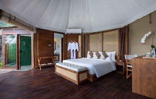 Bagian dari Wapa di Ume, boutique resort yang dikenal karena kehangatan dan keintimannya, The Wapa Lux Tent yang dirancang oleh arsitek lokal, Nitkala Arsitek menawarkan cara baru menikmati Bali: tenang, personal, dan penuh karakter. Hanya ada 17 tenda eksklusif—masing-masing dirancang dengan gaya kontemporer yang berpadu halus dengan arsitektur Bali. Desainnya menyerupai lumbung padi, simbol kesederhanaan yang diterjemahkan ulang dalam balutan kemewahan: kayu galam, kain songket, dan palet warna bumi yang berpadu dengan lanskap sekitar.