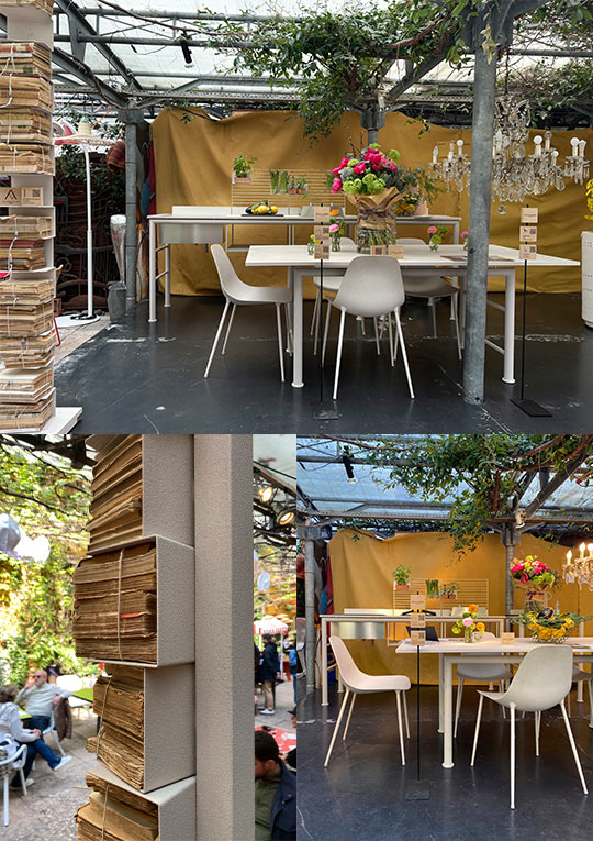 Sustainability remains the quiet heart of Opinion Ciatti’s philosophy. The company once again constructed its Milan stand using recyclable, eco-friendly panels, and showcased Corkcrete’s versatility across Axis and ILletto — proof that responsibility can be both tactile and beautiful.