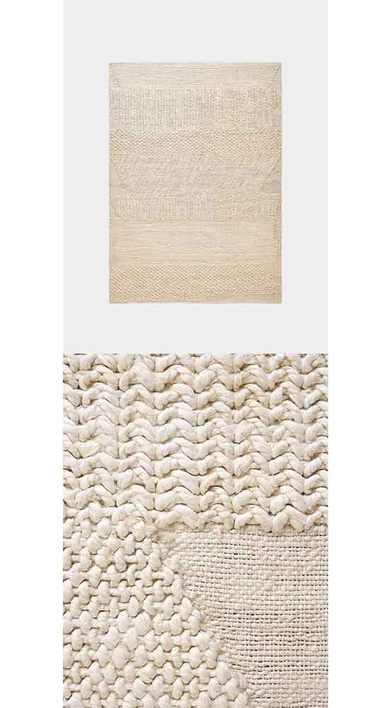 Each rug and cushion is handmade by artisans in Northern India, where traditional weaving techniques meet Dixon’s contemporary sensibility. Natural jute and New Zealand wool are transformed into textiles that feel both grounded and luxurious—durable yet indulgent.