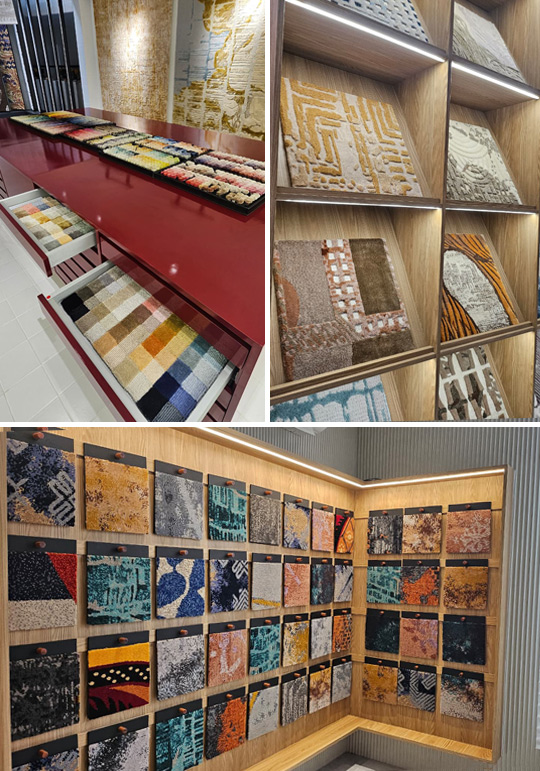 Dibandingkan showroom sebelumnya yang berlokasi di kawasan K.H. Dahlan, Jakarta Selatan, ruang baru ini menawarkan skala yang lebih lapang dan alur yang lebih longgar. Setiap area memberi jarak yang cukup agar koleksi dapat tampil utuh, memungkinkan pengalaman melihat dan merasakan karpet dari berbagai sudut pandang.