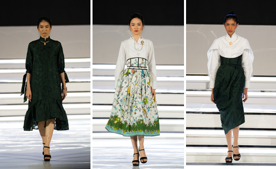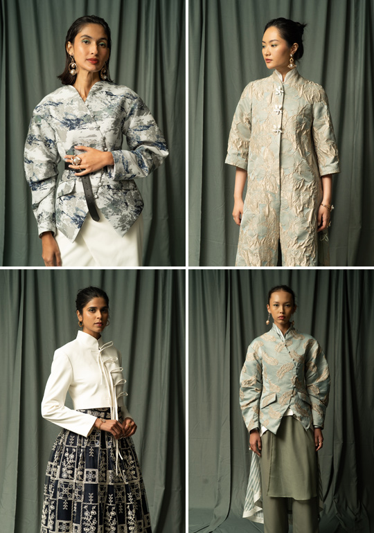 Willim juga menafsirkan kembali detail busana tradisional Asia melalui pendekatan yang lebih modern. Kerah tinggi, penutup kancing simpul yang subtil, serta garis desain yang minimal menjadi referensi pada warisan busana klasik tanpa terasa literal, sehingga setiap potongan tampil relevan dan serbaguna. Jaket atau atasan cropped yang dipadukan dengan rok panjang maupun celana tailored turut memperkuat permainan proporsi dalam koleksi ini. Hasilnya adalah rangkaian busana yang tidak hanya cocok untuk suasana perayaan, tetapi juga mudah dikenakan dalam berbagai kesempatan.