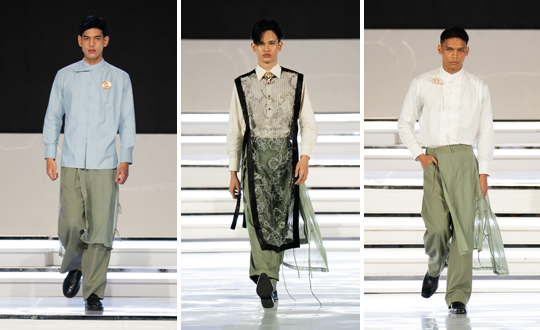 Koleksi menonjolkan konstruksi yang bersih, permainan layering yang modular, serta proporsi yang memanjang, sehingga referensi tradisional tampil dengan kejernihan arsitektural yang modern.